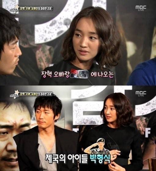 수애는 "장혁과 함께 '진짜 사나이'에 나오는 박형식씨가 눈에 띈다"며 호감을 보였지만 "어떤 노래를 불렀는지는 잘 모른다"고 덧붙여 웃음을 자아냈다.