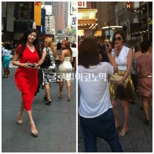 실제 그녀를 본 뉴욕시민들도 김사랑의 모습을 뒤돌아 쳐다보고 있다.
