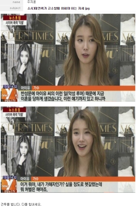 그러나 아이유 역시 결국 회사 측의 설득에 악플러들을 용서해주고 말았다.