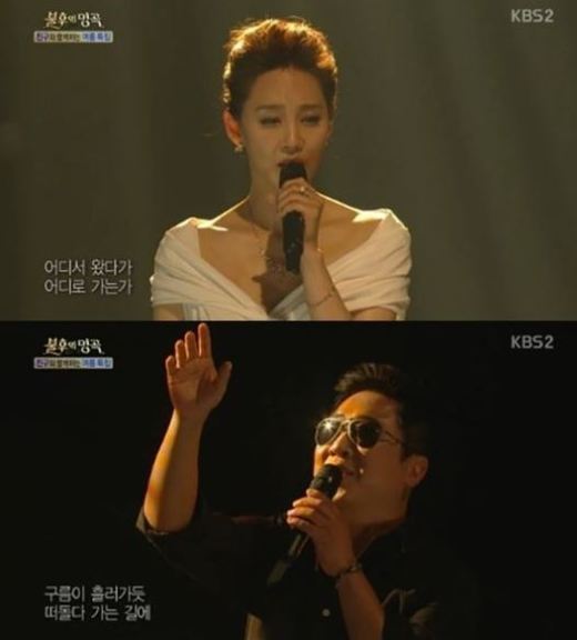 오현경과 이동우는 25일 오후 방송한 KBS2 '불후의 명곡-전설을 노래하다'의 '친구 특집'에 출연했다. 두 사라은 이날 가수 최희준의 '하숙생' 무대를 선사해 보는 이들에게 잔잔한 감동을 선사했다.
