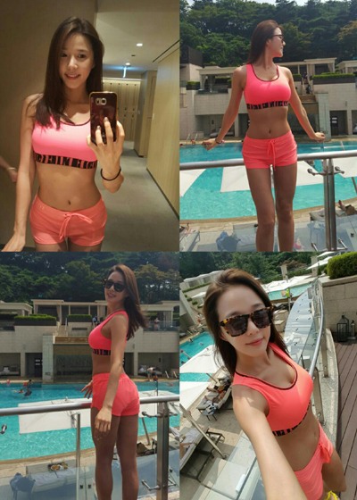 레이양은 28일 자신의 인스타그램에 야외 수영장에서 찍은 사진들을 올렸다.