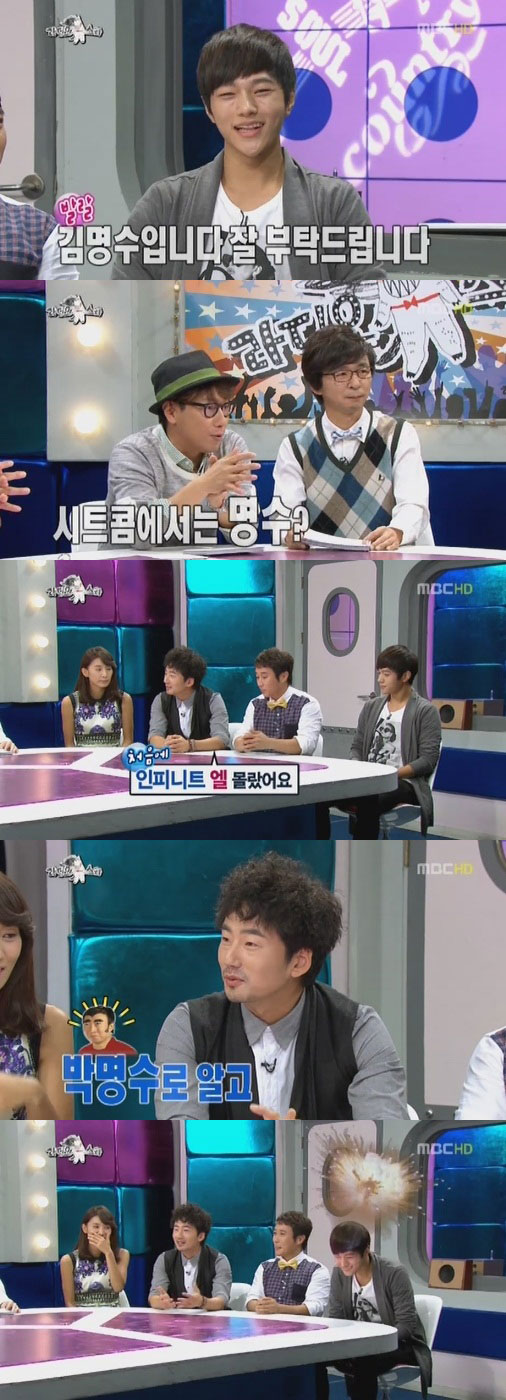 당시 인피니트의 엘은 본명 김명수로 자신을 소개했다. MC들은 "시트콤에서는 엘이라는 이름이 아닌 김명수로 활동하냐"고 질문했다.