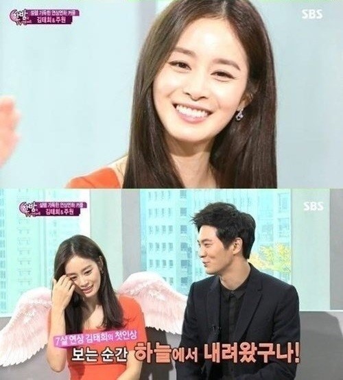 이날 주원은 상대역 김태희의 미모에 대해서 "김태희를 보는 순간 느꼈다. 하늘에서 내려왔구나"라며 극찬을 했다.