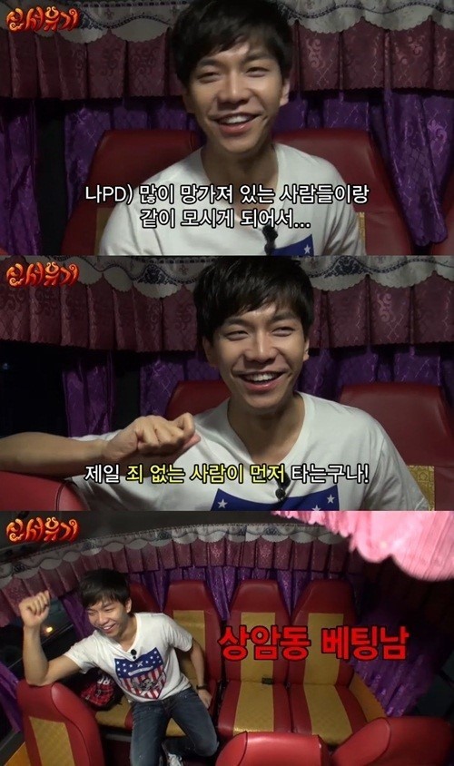 이날 방송에서는 이승기가 버스에 가장 먼저 탑승하자 나영석 PD는 “일단 다른 멤버들 타기 전에 사과 먼저 하겠다. 많이 망가져 있는 사람들과 같이 모시게 돼 미안하다”고 말했다.