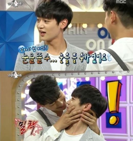 이날 이지훈은 자신만의 키스신 3종 세트를 선보였다. 민호는 이지훈의 키스신 재연 상대 역할을 맡게 됐다.