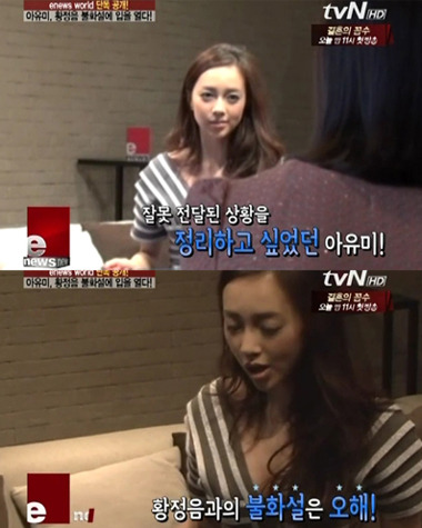 지난 2012년, 아유미는 TVN'이뉴스'에 출연해 자신이 속했던 슈가의 멤버 황정음과의 불화설 루머에 대해 솔직하게 밝힌 바 있다.