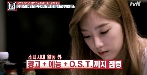 지난 6월 방송된 케이블채널 tvN 예능프로그램 ‘명단공개 2015’에서는 집안을 일으켜 세운 으리으리한 효도 스타들의 명단이 공개됐다. 그 가운데 소녀시대 태연이 효녀 스타 5위로 선정돼 이목을 집중시켰다.