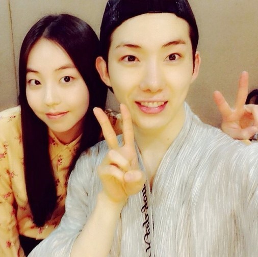 공개된 사진에는 뮤지컬 공연을 위한 분장을 마치고 가운을 입고 있는 조권과 긴 생머리를 늘어뜨린 채 여전히 귀여운 외모를 자랑하는 안소희의 모습이 보인다. 특히 나란히 카메라를 응시하며 다정한 분위기를 연출해 보는이들의 시선을 사로잡았다.