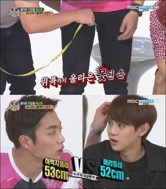MC 정형돈이 직접 윤두준의 허벅지 둘레를 잰 결과 53cm로 측정됐으며, 이어 잰 머리둘레는 52cm로 측정되며 보는이들을 경악케했다.