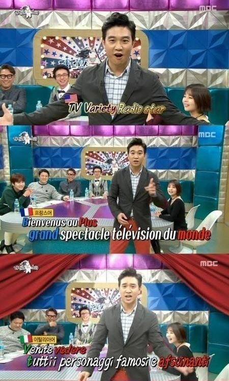 이날 방송에서 그는 실제로 5개 국어로 라디오스타를 소개하는 등 거침없는 실력을 발산했으며, 자신의 어학 수준에 대해 "저는 어학 수준을 세 가지로 나눈다"며 "연애가 가능한 것을 최상위로 본다. 한국어, 영어, 프랑스, 이탈리아어로 연애를 해 본 경험이 있다"고 덧붙여 이목을 집중시켰다.