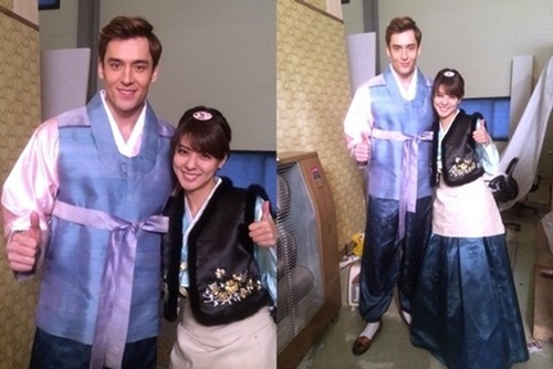 지난 2013년 TVN‘감자별 2013QR3’에 출연한 후지이 미나는 극중 연인으로 호흡맞춘 줄리엔강과 한복 사진을 촬영했다.