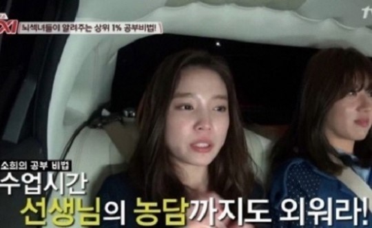 윤소희는 지난 3월 방송된 tvN '현장 토크쇼 택시- 뇌가 섹시한 여자' 특집에 출연해 자신만의 공부 비법을 공개했다.