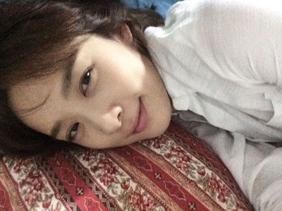 공개된 사진 속 이청아는 베개에 누워 정면을 바라보고 있다.