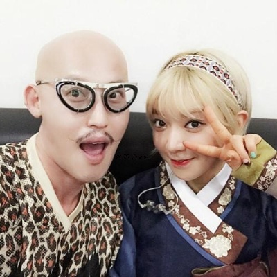 공개된 사진 속에는 귀여운 표정을 짓고 있는 황재근과 손으로 브이자를 그리고 있는 초아의 모습이 담겨 있다.
