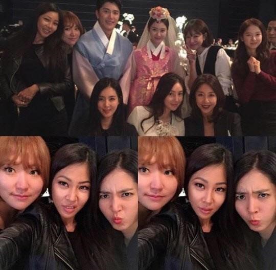 공개된 사진에는 고운 한복을 입은 한그루와 남편, 또 MBC '일밤-진짜사나이' 여군특집에서 함께 호흡을 맞춘 제시와 김현숙, 신소율, CLC 유진, 한채아, 박규리, 전미라가 함께 하고 있다.