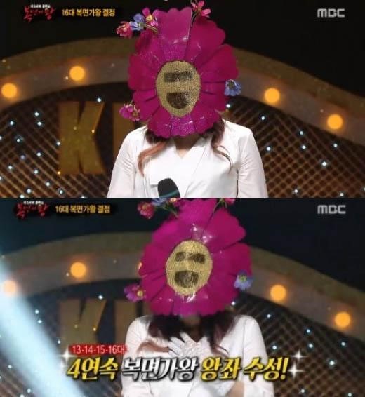 이미지 확대보기이날 가왕 코스모스는 상감마마에 맞서 방어전에 나섰다. 이날 코스모스는 박정현의 ‘몽중인’으로 타이틀 방어에 성공, 4연속 가왕으로 이름을 올렸다. 상감마마의 정체는 에이트 이현이었다.