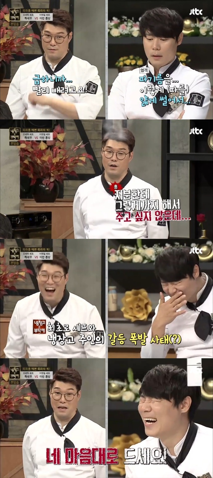 9일 방송된 JTBC 예능프로그램 '냉장고를 부탁해'에서는 1주년 특집으로 냉부의 셰프 최현석과 김풍을 위한 요리 대결이 펼쳐졌다.