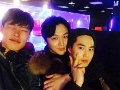 류준열이 공개한 사진 속엔 아이돌 그룹 엑소 멤버 수호와 변요한의 모습이 담겨있다.