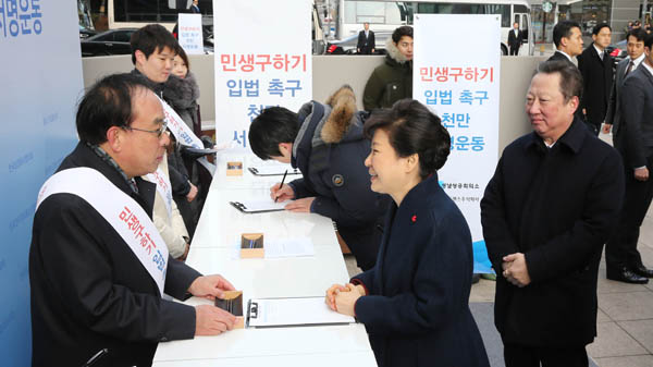 [포토] 민생구하기 입법 촉구 천만 서명운동에 동참하는 박근혜 대통령
