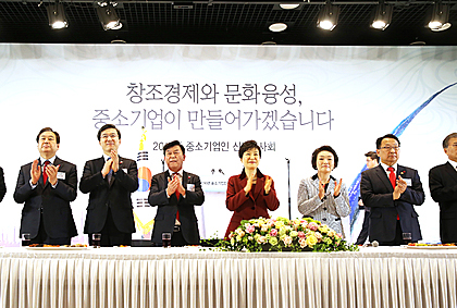 박 대통령은 인사말을 통해 "창조경제와 문화융성의 주역인 중소기업이 청년 일자리 창출·창업·해외진출 등의 경제혁신과 부흥을 위해 함께 노력해 주길 바란다"고 당부했다.