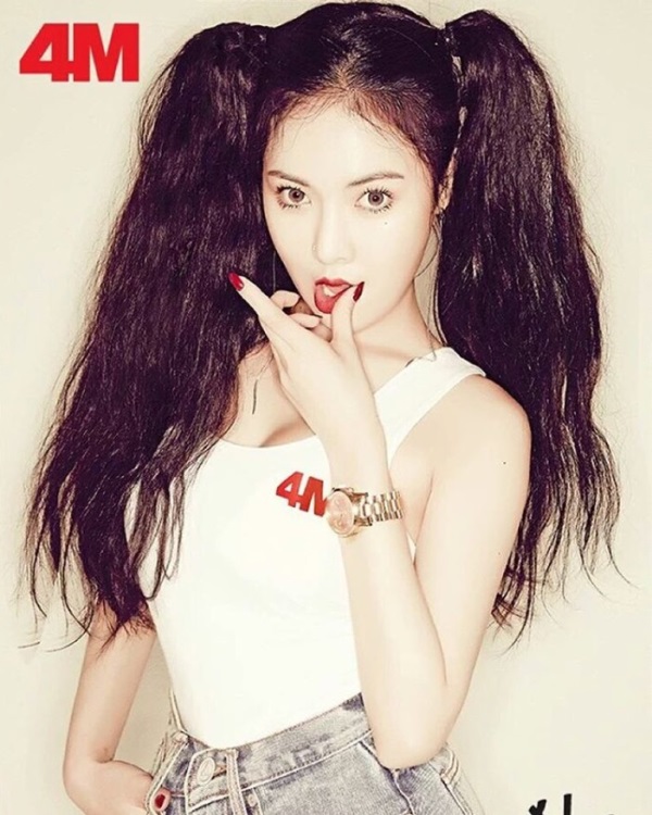 이미지 확대보기사진속 현아는 흰색 티셔츠에 볼륨감 있는 몸매를 드러내며 빨간 립스틱과 매니큐어 그리고 포미닛의 로고 4M의 레드 컬러매치로 강렬한 인상을 남기고 있다.