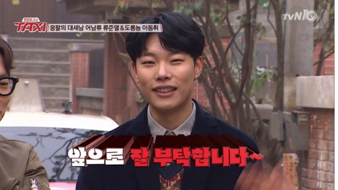이미지 확대보기류준열은 26일 밤 방송된 tvN '현장토크쇼 택시'(이하 '택시')의 '응답하라 1988' 특집에 동룡 역의 이동휘와 함께 출연해 드라마 출연 소감과 비하인드 스토리를 들려주는 시간을 가졌다.