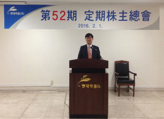 이미지 확대보기이날 주주총회에서 현대약품은 ▲재무제표 승인의 건 ▲사외이사 선임 ▲이사 보수한도 등 안건을 원안대로 통과시켰다. 이에 따라 현대약품은 이한구 사내이사와 함천수 사외이사의 중임을 확정했다. 또한 현금배당도 함께 결의했으며 주당 47.5원을 배당하기로 했다.