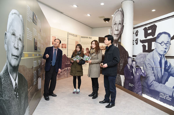 관람객들이 2일 재개관식을 가진 '서재필 기념관'에서 서재필 선생의 독립운동 활동을 살펴보고 있다.
