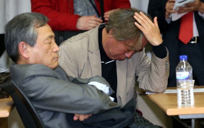 이미지 확대보기11일 오후 서울 영등포구 여의도 중소기업중앙회 중회의실에서 개성공단기업협회 긴급 이사회를 마친 정기섭 개성공단기업협회장이 회의 결과를 발표하자 입주사 관계자들이 고뇌하고 있다.[글로벌이코노믹 최지영 기자] 개성공단기업협회는 11일 서울 중소기업중앙회에서 비상회의를 열고 북한의 개성공단 폐쇄에 따른 남측 자산 동결 조치와 관련해 "정부의 후속 대책과 보상을 요구할 것"이라고 입장을 밝혔다.