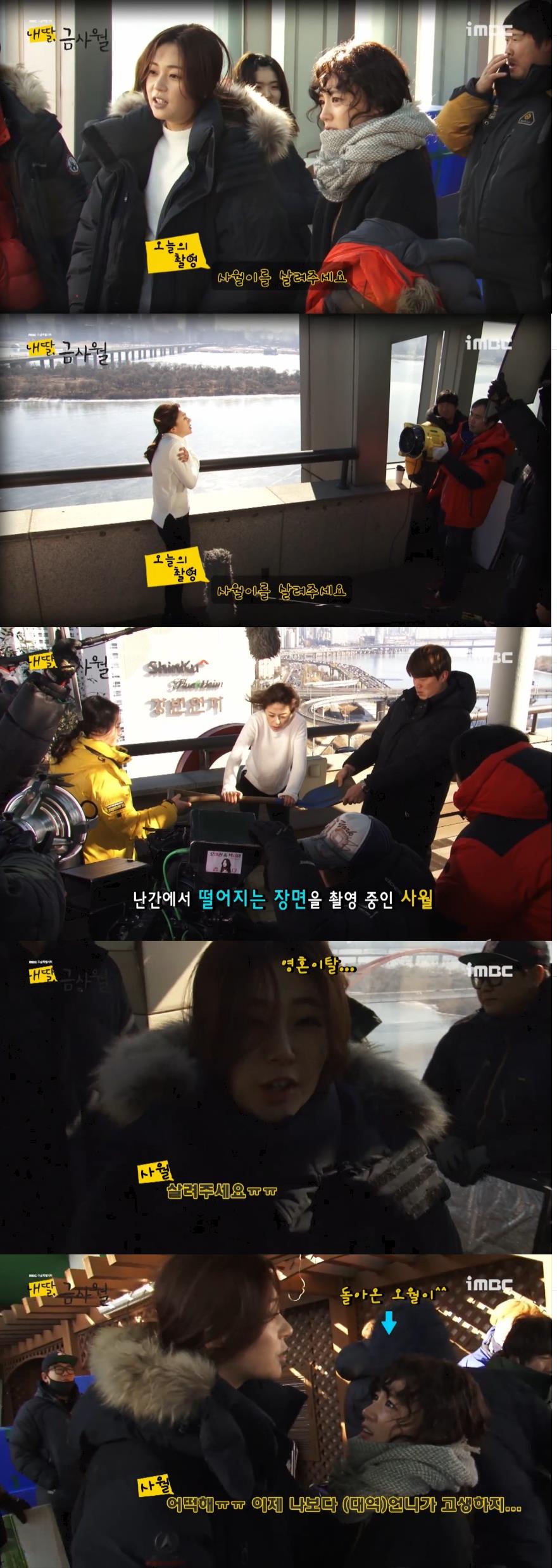 이미지 확대보기또한 사월이가 안간힘을 쓰며 매달렸던 난간은 실제로는 삽자루로 밝혀져 큰 웃음을 주고 있다.