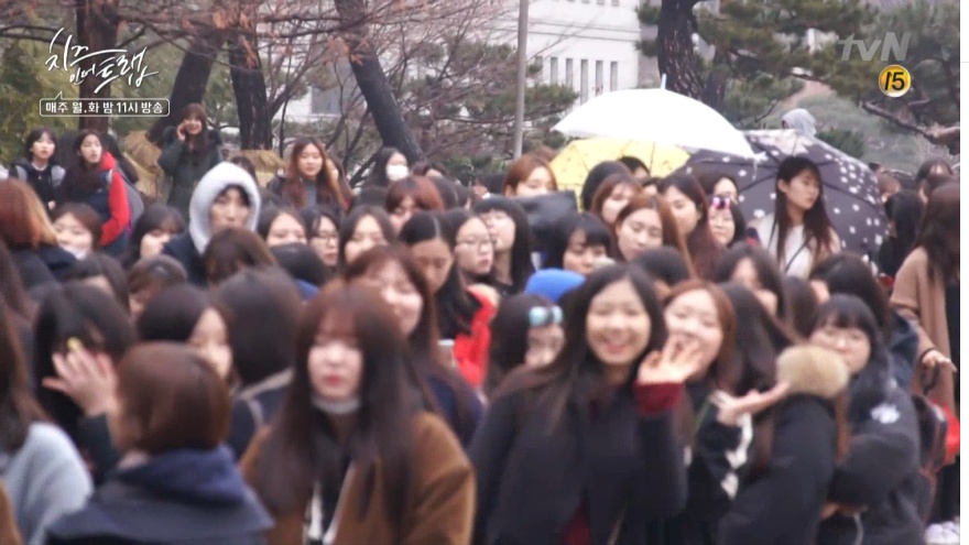 이미지 확대보기지난 12일 숙명여자대학교에서 진행된 치즈인더트랩 게릴라 프리허그 동영상이 공개됐다. 박해진은 프리허그는 처음이라며 최선을 다해 많은 팬들을 안아드리겠다고 각오를 다졌다./사진=tvN 방송 캡처