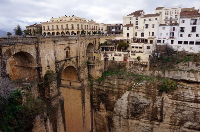 협곡 사이에 놓인 누에보 다리는 하늘을 향해 100m가 훨씬 넘는 높이로 치솟은 론다 절벽 위에 세워져 있다. 절벽 위에 건물을 지은 투우사의 나라 스페인, 소설가 헤밍웨이가 그의 마지막 생일을 지낸 곳도 바로 스페인 남부 안달루시아 협곡마을 론다이다. 그는 이곳 절벽에서 피카소와 함께 즐기면서 소설 ‘누구를 위하여 종은 울리나’를 썼다. 이처럼 헤밍웨이를 매료시킨 깎아지른 절벽은 우리에게 모험과 아름다움을 동시에 주고 있는 것이다.