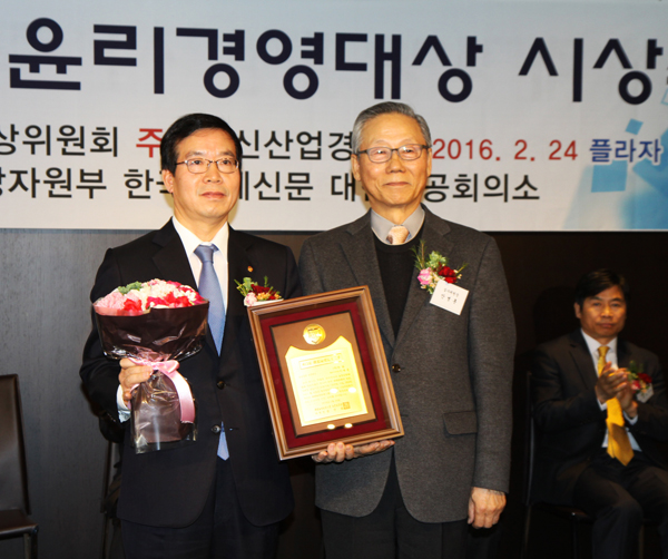 이미지 확대보기한국윤리경영대상은 신산업경영원이 주관하고 산업통상자원부와 대한상공회의소가 후원하는 상으로 ‘건전한 기업, 부강한 나라’를 모토로 국내 기업들의 윤리경영 우수 사례를 발굴하여 널리 알림으로써 새로운 국제경쟁력을 배양하기 위해 마련됐다.