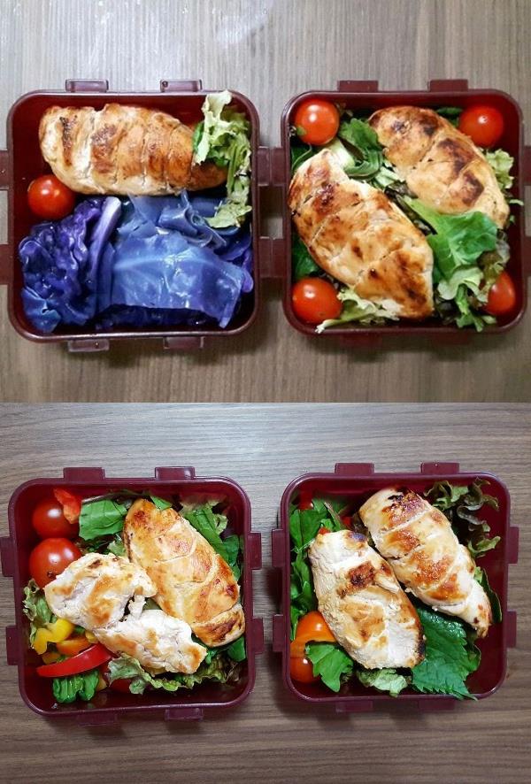 이미지 확대보기레이양이 4일 공개한 양배추와 구운 닭가슴살, 야채 샐러드 등으로 구성된 점심, 저녁 다이어트 도시락/사진=인스타그램 캡처