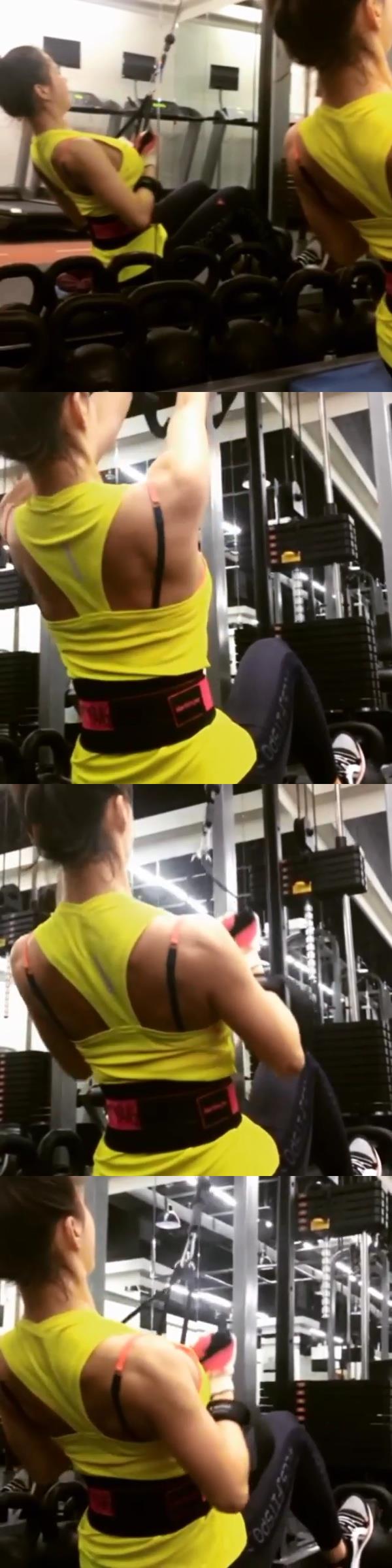 이미지 확대보기레이양이 4일 자신의 SNS에 홈짐 위에 앉아서 등운동을 하는 동영상을 공개했다./사진=인스타그램 캡처