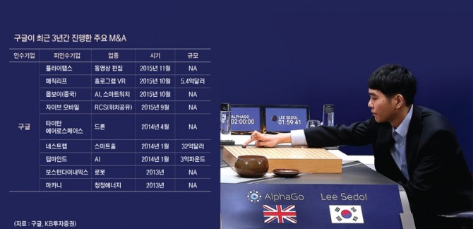 세기의 바둑대결은 알파고의 승리로 막을 내렸지만 실질적으로는 알파고를 인수한 구굴의 인수합병(M&A) 혜안이 더욱 빛나보이는 한 수(手)라 할 수 있다.
