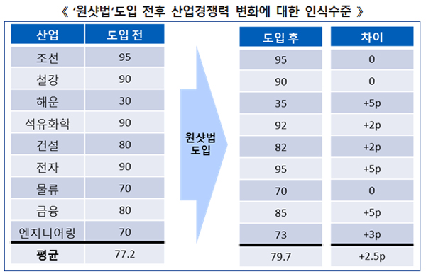 원샷법 도입의 파급 효과에 대해 기업들은 전반적으로 원샷법 도입이 한국경제 회복에 미치는 영향이 다소 존재한다고 보고 있었다.