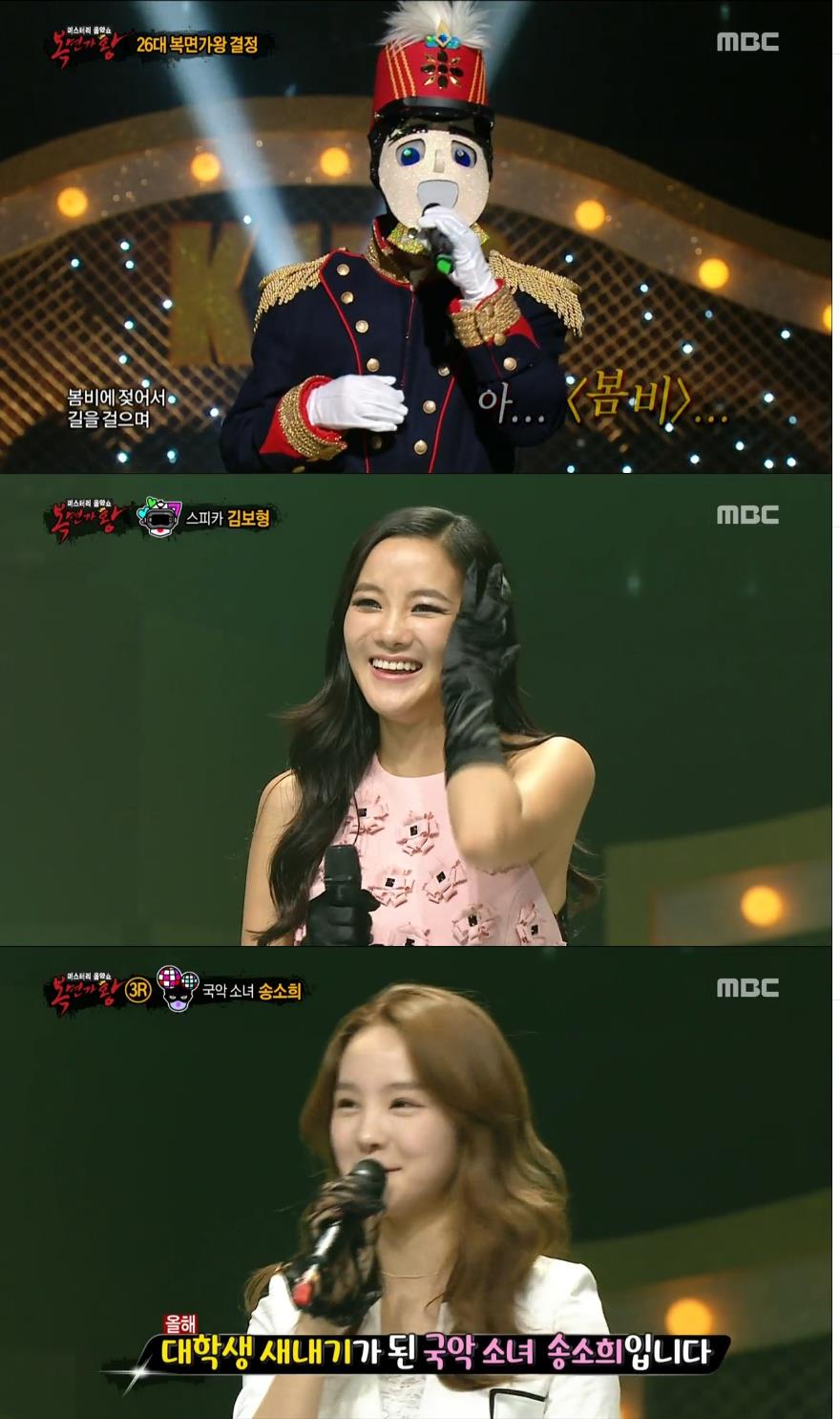 가면을 벗은 '노셨군요'는 패널들의 예상처럼 국악소녀 송소희로 드러났다. 이날 송소희는 '확신에 찬 무지는 패가망신의 지름길'이라는 김구라를 완전히 속이는 무대를 선사했다. 송소희는 전국노래자랑에 5살 때 출연한 새내기 대학생으로 "자신에게 주는 선물"이라며 "이런 무대에 설 기회도 없고, 즐거운 시간 만들고 싶어서 나왔다"고 소감을 밝혔다.