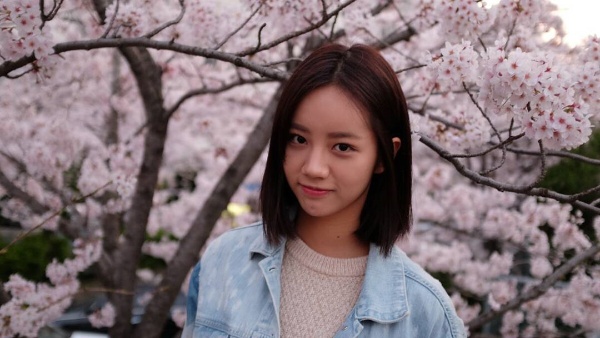 사진 속의 혜리는 단발머리가 살짝 더 길어져서 어깨선까지 닿은 모습으로 활짝 핀 벚꽃을 배경으로 미소를 띠고 있다.