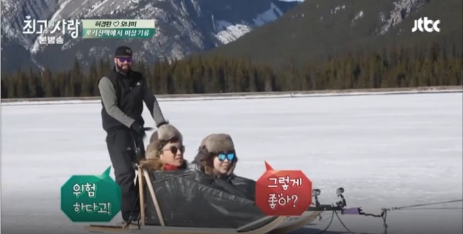 허경환은 안전요원 한 명과 뒤쪽에 서고 오나미는 앞쪽 주머니 안에 앉았다. 뒤 쪽에서 개썰매를 즐기던 허경환은 바람이 너무 차가워 결국 오나미와 자리를 바꾸자고 한다. 그러나 오나미도 추위에 떨며 앞쪽 주머니 자리에 같이 앉기를 희망한다.