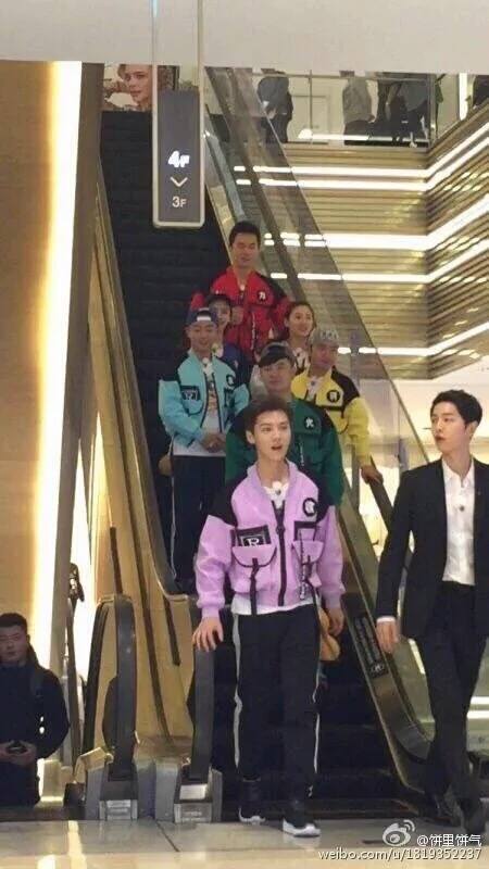 사진은 중국판 '런닝맨'인 '달려라 형제 시즌4' 녹화현장을 담은 것. 이날 송중기는 서울의 한 면세점에서 덩차오, 왕조람, 리천, 진혁, 정개, 안젤라베이비, 루한 등의 중국 런닝맨 멤버들과 함께 촬영을 진행한 것으로 알려졌다.