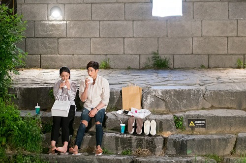 공개된 사진 속에는 성훈과 신혜선이 청계천에서 신발을 벗어 놓은 채 맨발로 알콩달콩 데이트를 하는 장면이 담겨 있다.