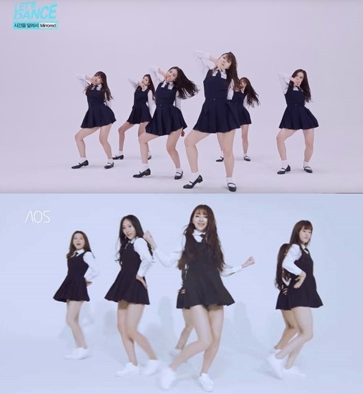 뿐만 아니라 AOS는 ‘시간을 달려서’의 포인트 안무인 시계 바늘 안무, 발차기 댄스 등을 그대로 따라했다. 여기에 멜로디 역시 여자친구 노래와 흡사하다는 의견과 더불어 에이핑크의 ‘Mr. Chu’와도 비슷하다는 의견까지 제기됐다.