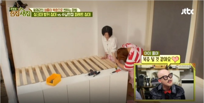 특히 김도현은 수납까지 해결한 ‘팔레트 침대’ 제작방법을 소개했다. 독특하면서도 활용적인 목재 팔레트를 이용한 인테리어 비법을 보여주며 시청자들의 관심을 집중 시켰다.