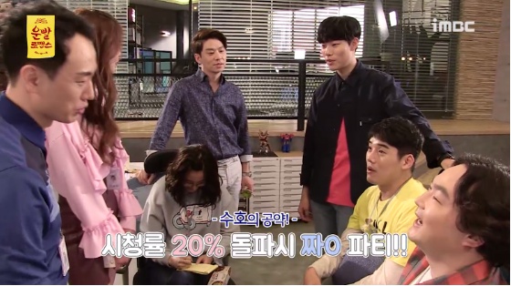 때를 놓치지 않고 윤봉길이 류준열의 시청률 공약 선언 분위기를 부추기자 류준열은 "20%가 넘으면 광고모델로 활동하고 있는 짜장라면을 쏘겠다"고 수줍게 대답해 팀원들이 환호했다.