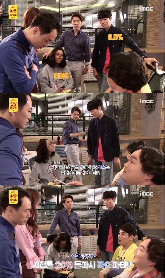 이미지 확대보기MBC는 25일 첫 방송을 앞두고 있는 새 수목드라마 '운빨로맨스' 첫방 시청률 내기에 나선 '제제 팩토리' 팀의 모습이 담긴 메이킹 영상을 공개했다.