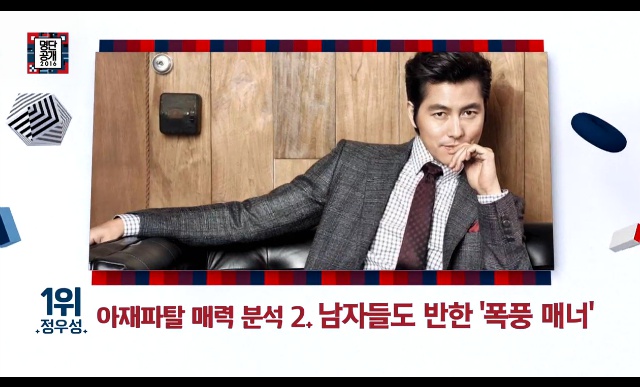 중년의 매력에 어머어마한 재력까지 겸비한 매력 터지는 '아재파탈' 스타 1위는 배우 정우성이 차지했다.