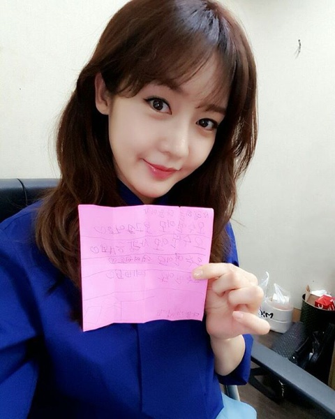 성유리는 6일 자신의 인스타그램에 다윤이가 보낸 분홍색 편지지에 쓴 러브레터를 공개하며 행복한 표정을 짓고 있다.
