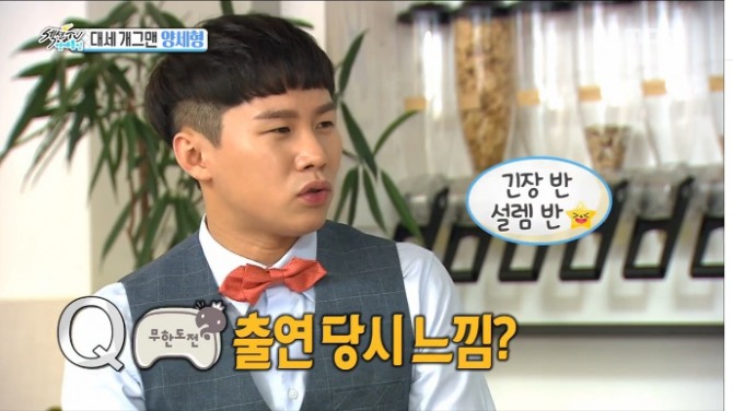 이날 방송에서 양세형은 "무한도전에 합류할 당시 선배님들이라서 걱정을 많이 했다"며 "걱정반 기대반으로 촬영장에 갔는데 광희가 먼저 다가와서 농담을 건네주며 긴장을 풀어줘서 무척 고마웠다"고 전했다.