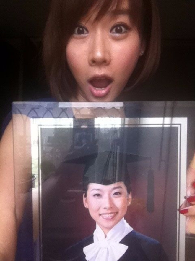 곽현화는 과거 자신의 미투데이에 '부산 고향집에서 충격적인 것 발견'이라는 글과 대학교 졸업 사진을 공개했다.